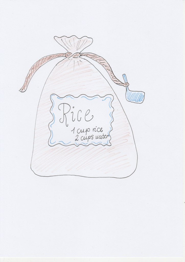 Substitute – The most packaging for rice is paper box, I substituted that with a cotton fabric bag