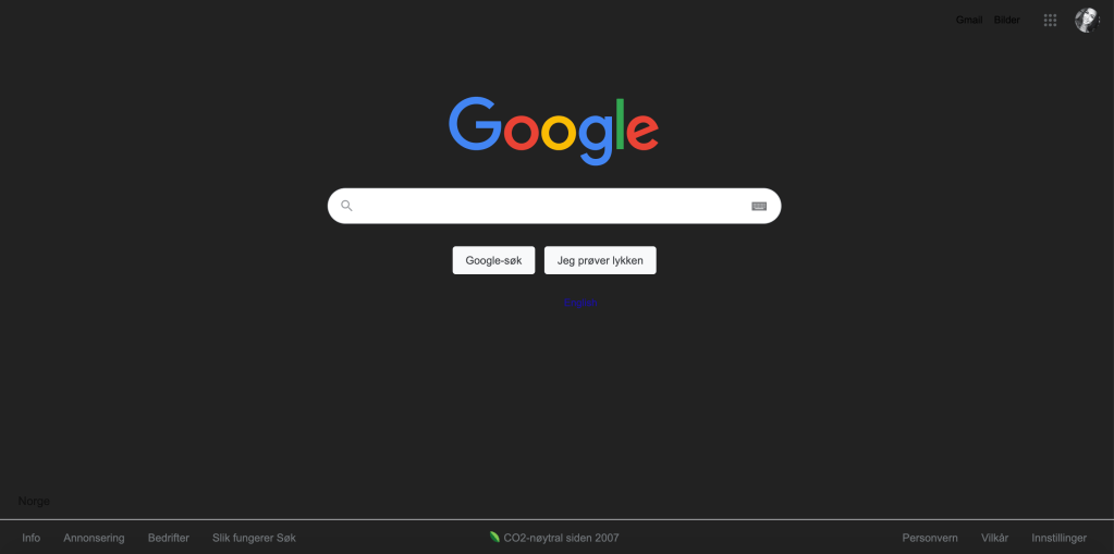 I changed the colour for the page to a black-tone colour, to give the serachbox and the logo more attention.